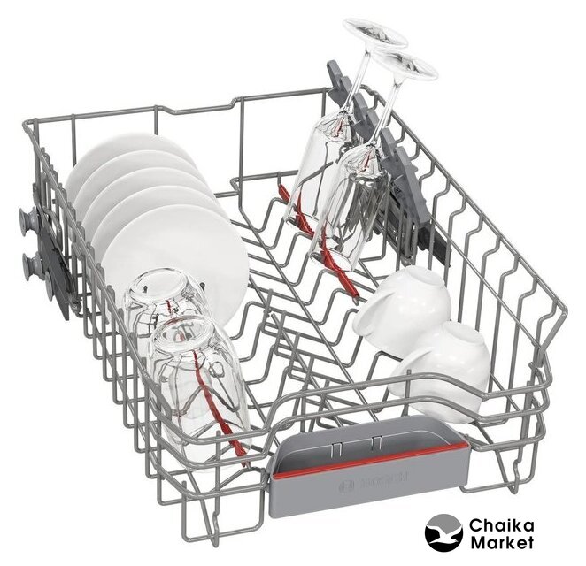 Особенности верхней корзины | регулировка положения по высоте, держатели для бокалов |