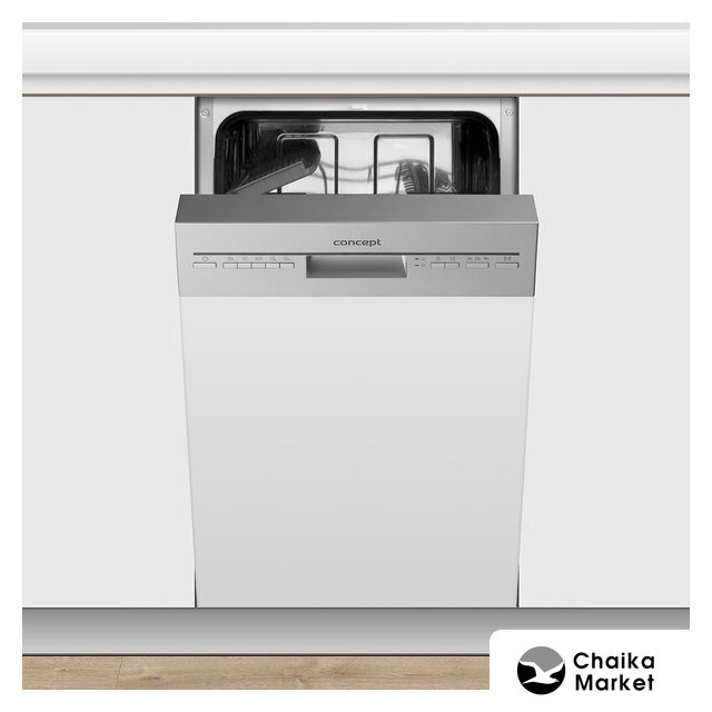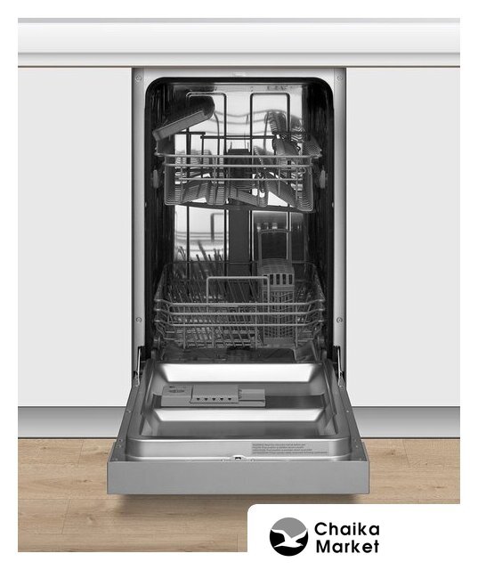 загрузка на 10 комплектов посуды, электронное управление, 8 программ, 44.8x57x82 см, нержавеющая сталь цвет, сушка: с открыванием дверцы, индикация на полу: луч