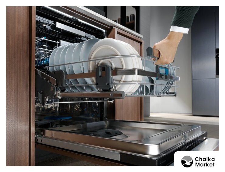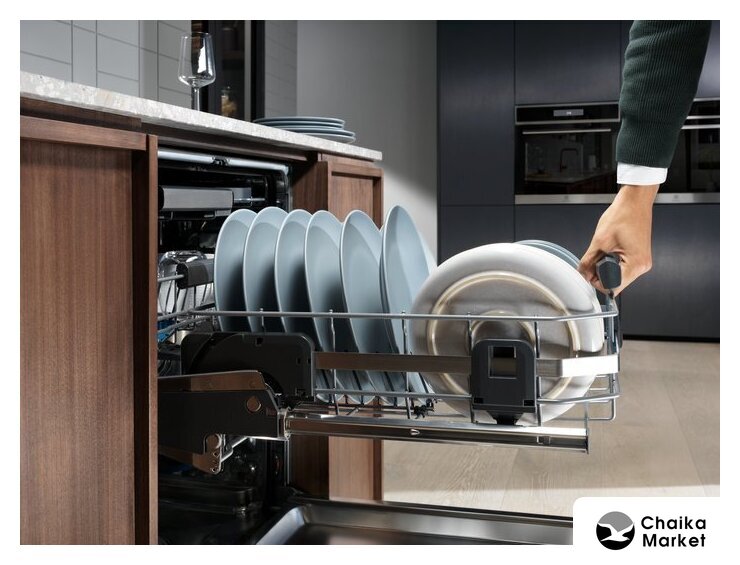 Особенности верхней корзины | регулировка положения по высоте, держатели для бокалов |