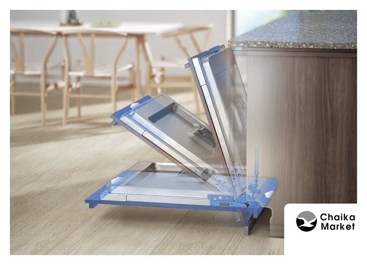 Особенности верхней корзины | регулировка положения по высоте, держатели для бокалов |