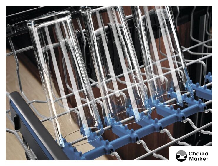 Особенности верхней корзины | регулировка положения по высоте, держатели для бокалов |