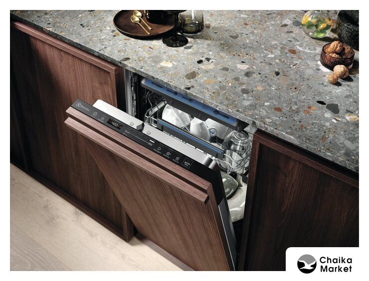 загрузка на 14 комплектов посуды, сенсорное управление, 7 программ, 59.6x55x82 см, черный цвет, сушка: с открыванием дверцы, индикация на полу: луч