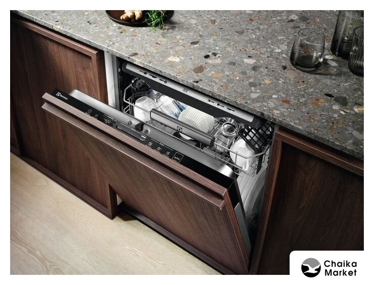 загрузка на 14 комплектов посуды, сенсорное управление, 8 программ, 59.6x56x82 см, черный цвет, сушка: стандартная (конденсация)/с открыванием дверцы, индикация на полу: проекция дисплея