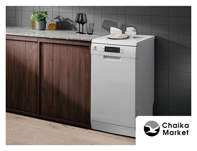 загрузка на 5 комплектов посуды, сенсорное управление, 7 программ, белый цвет, сушка: с открыванием дверцы, индикация на полу: нет