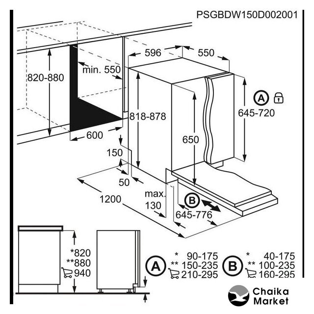 загрузка на 13 комплектов посуды, сенсорное управление, 8 программ, 59.6x55x82 см, черный цвет, сушка: с открыванием дверцы, индикация на полу: луч