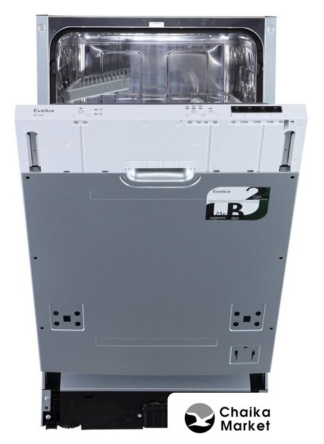 загрузка на 9 комплектов посуды, электронное управление, 5 программ, 44.8x55x82 см, белый/черный цвет, сушка: стандартная (конденсация), индикация на полу: нет