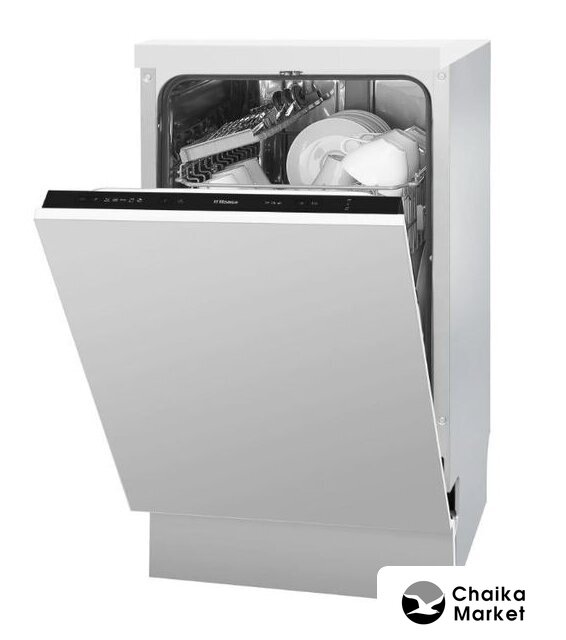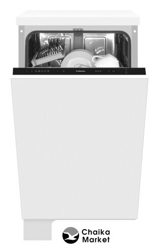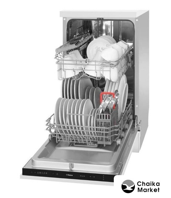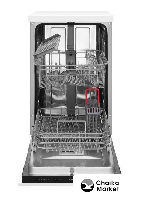 загрузка на 9 комплектов посуды, электронное управление, 5 программ, 44.8x55x82 см, белый/черный цвет, сушка: стандартная (конденсация), индикация на полу: нет