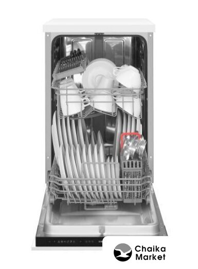 загрузка на 10 комплектов посуды, электронное управление, 5 программ, серебристый цвет, сушка: стандартная (конденсация), индикация на полу: луч