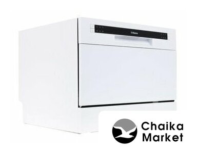 загрузка на 6 комплектов посуды, электронное управление, 7 программ, белый цвет, сушка: стандартная (конденсация), индикация на полу: нет