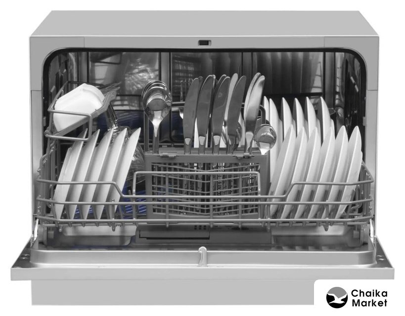 загрузка на 10 комплектов посуды, электронное управление, 6 программ, серебристый цвет, сушка: конденсационная, половинная загрузка, индикация на полу: нет