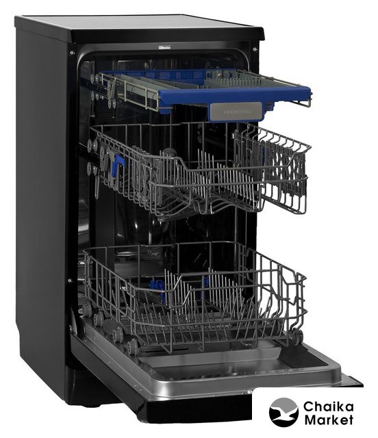 загрузка на 13 комплектов посуды, сенсорное управление, 6 программ, 59.8x55x82 см, черный цвет, сушка: стандартная (конденсация), индикация на полу: нет