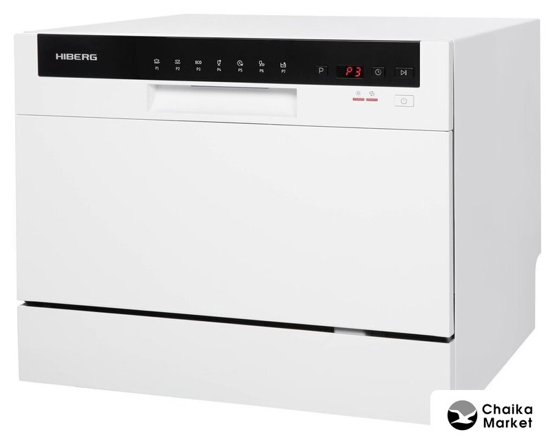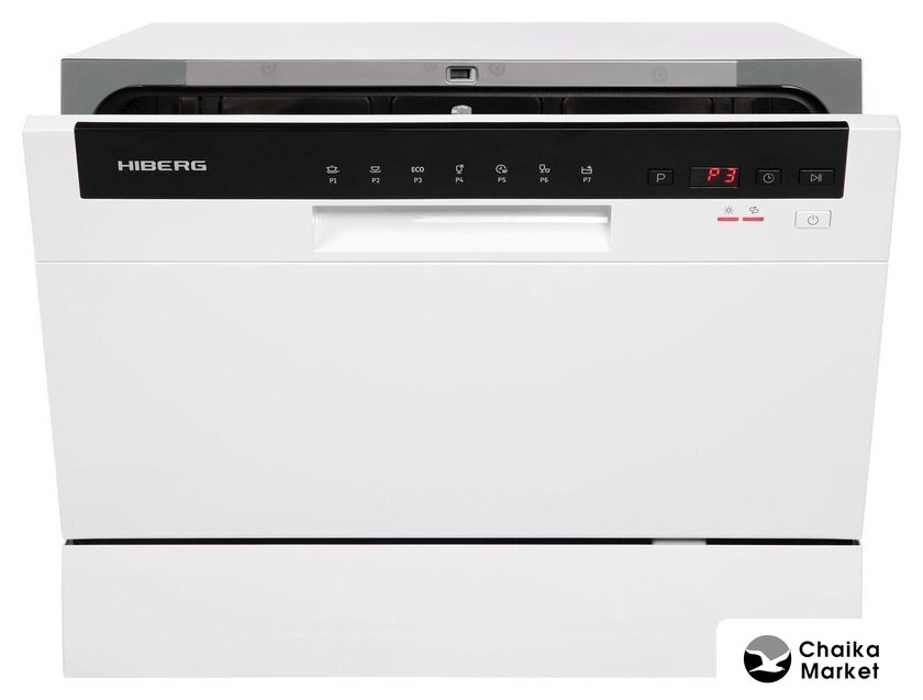 загрузка на 8 комплектов посуды, электронное управление, 7 программ, белый цвет, сушка: стандартная (конденсация), индикация на полу: нет
