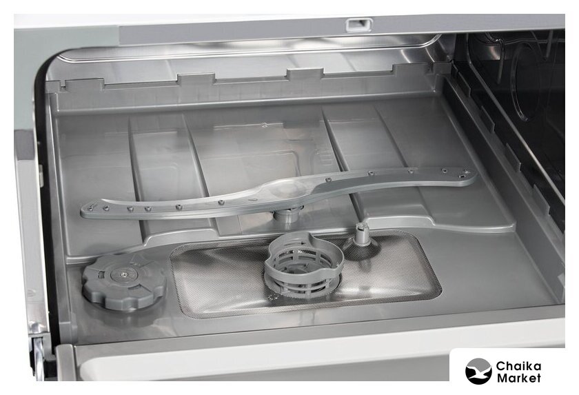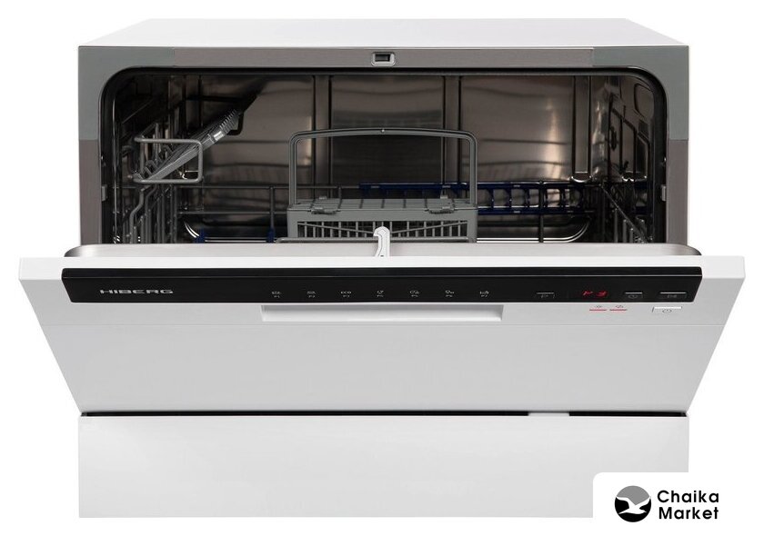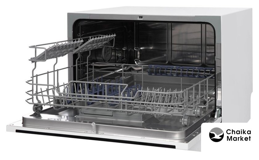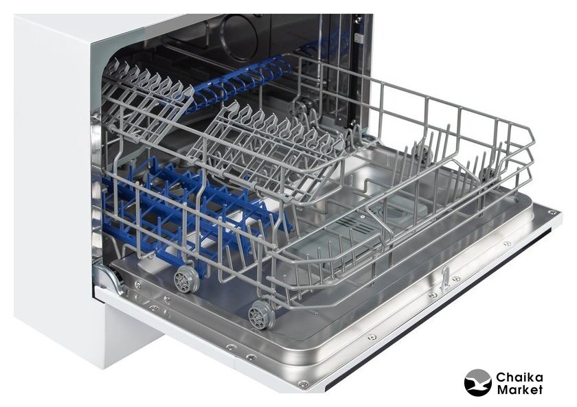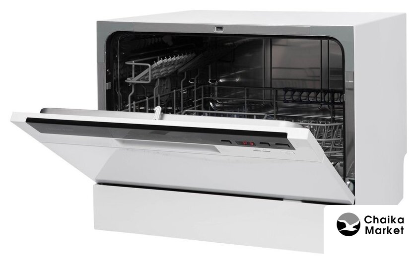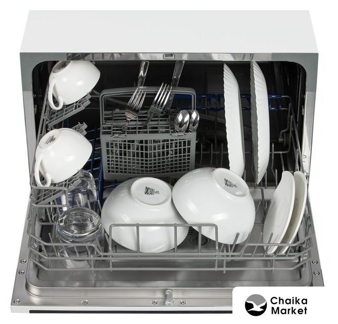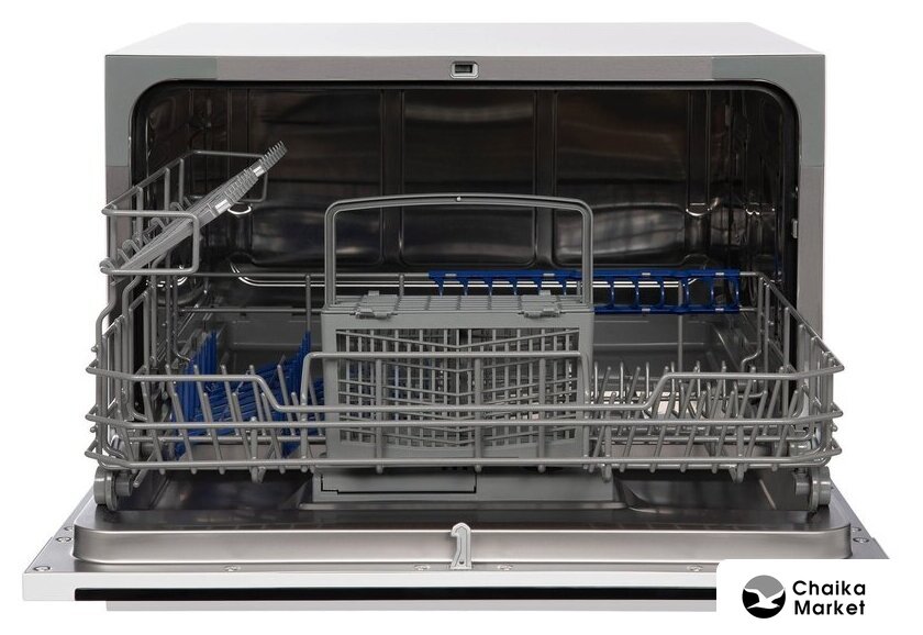 загрузка на 6 комплектов посуды, электронное управление, 5 программ, серебристый цвет, сушка: конденсационная, индикация на полу: нет
