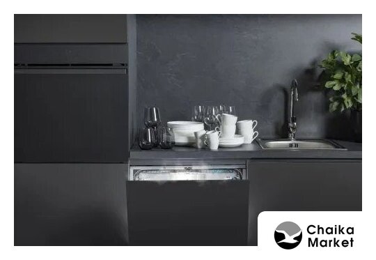 загрузка на 14 комплектов посуды, электронное управление, 7 программ, 59.8x55x81.5 см, черный цвет, сушка: стандартная (конденсация)/с открыванием дверцы, индикация на полу: луч