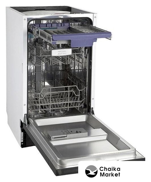 загрузка на 9 комплектов посуды, электронное управление, 4 программы, 44.8x55x82 см, нержавеющая сталь/черный цвет, сушка: стандартная (конденсация), индикация на полу: луч