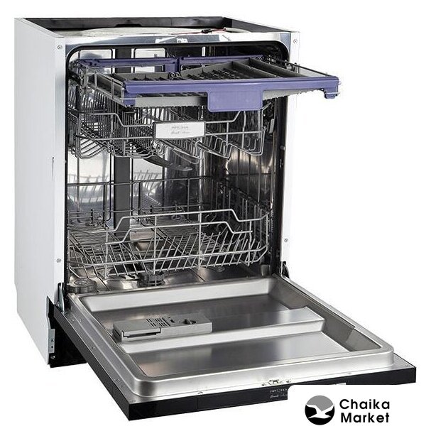 загрузка на 14 комплектов посуды, электронное управление, 6 программ, 59.8x55x82 см, черный цвет, сушка: стандартная (конденсация), индикация на полу: луч