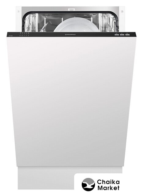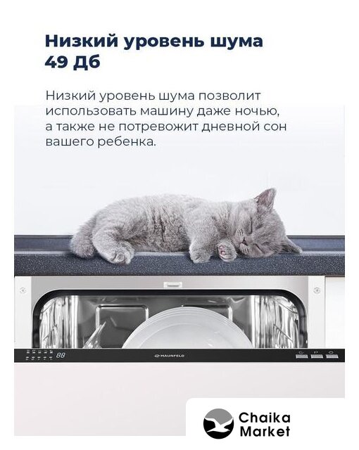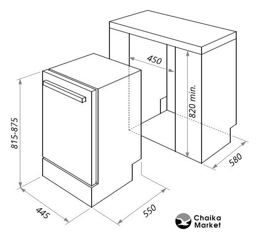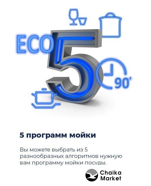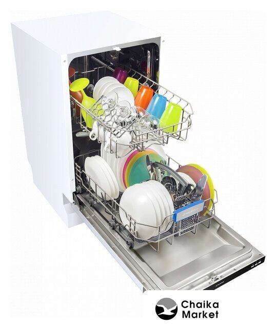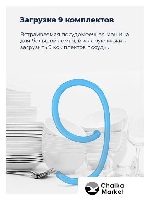 загрузка на 9 комплектов посуды, электронное управление, 5 программ, 44.8x55x82 см, черный цвет, сушка: стандартная (конденсация), индикация на полу: луч