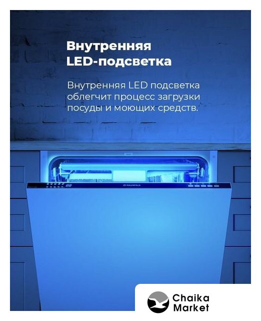 загрузка на 10 комплектов посуды, сенсорное управление, 8 программ, черный цвет, сушка: стандартная (конденсация)/с открыванием дверцы, индикация на полу: луч