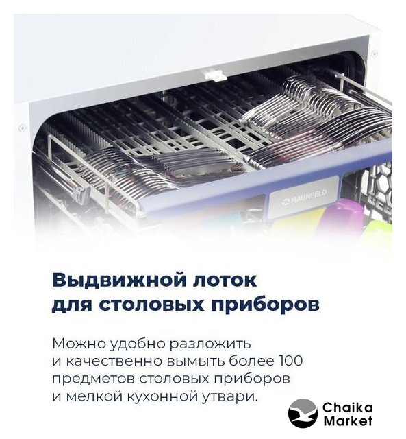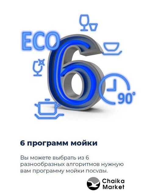 загрузка на 10 комплектов посуды, сенсорное управление, 6 программ, белый цвет, сушка: с открыванием дверцы, индикация на полу: нет