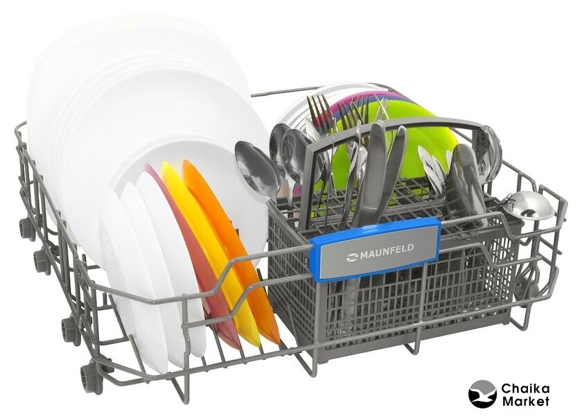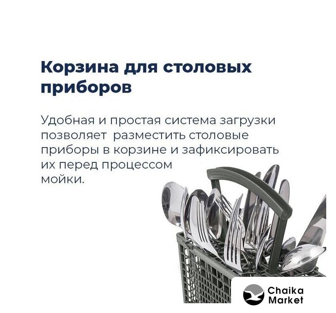 загрузка на 10 комплектов посуды, электронное управление, 8 программ, 44.8x55x82 см, серебристый цвет, сушка: стандартная (конденсация)/с открыванием дверцы, индикация на полу: луч