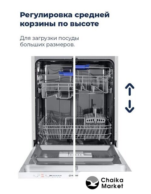 загрузка на 14 комплектов посуды, электронное управление, 6 программ, 59.8x55x81.5 см, нержавеющая сталь цвет, сушка: с теплообменником, индикация на полу: луч