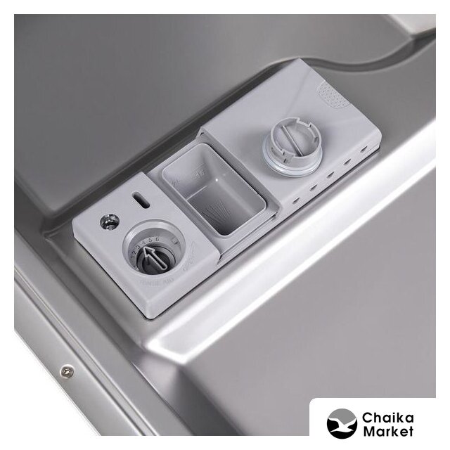 загрузка на 6 комплектов посуды, электронное управление, 5 программ, серебристый цвет, сушка: конденсационная, индикация на полу: нет