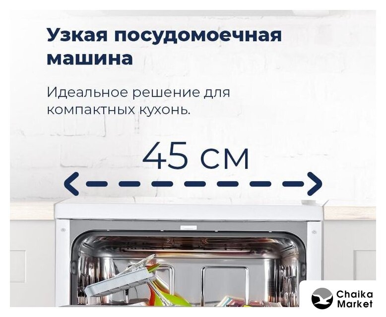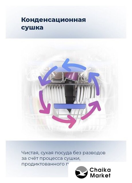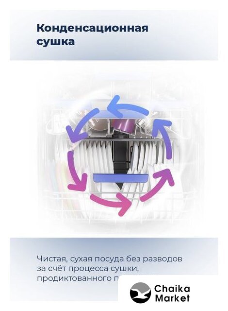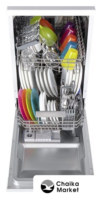 загрузка на 9 комплектов посуды, электронное управление, 6 программ, белый цвет, сушка: стандартная (конденсация), индикация на полу: нет