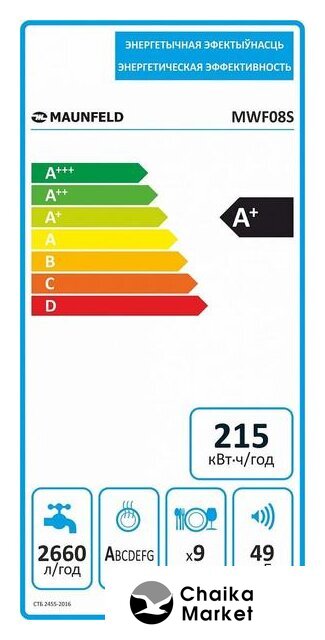 | Максимальная загрузка (комплекты посуды) | 9 |
