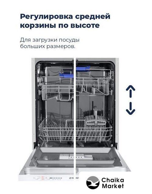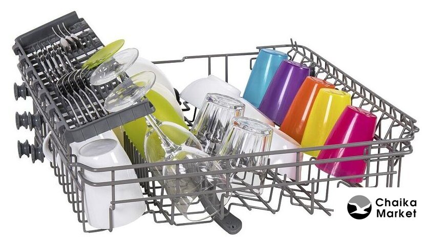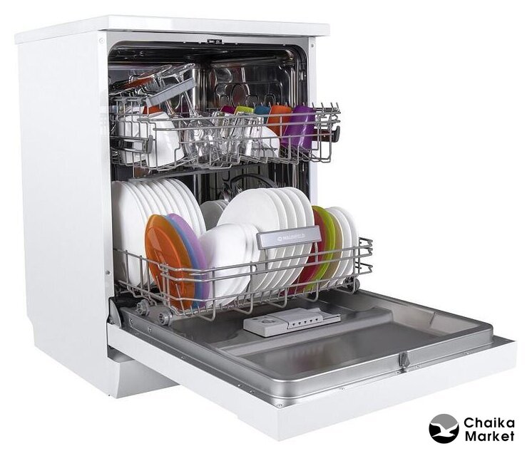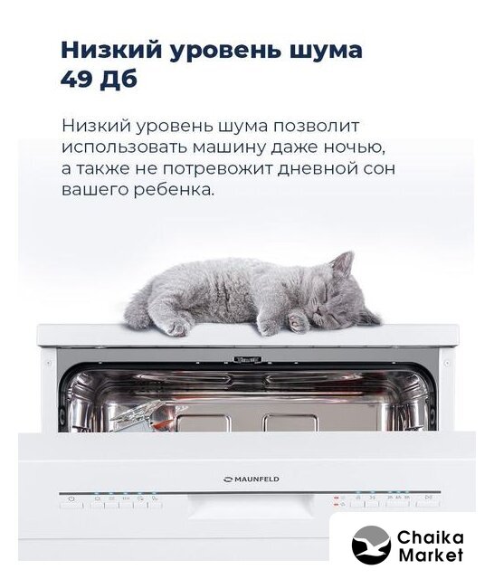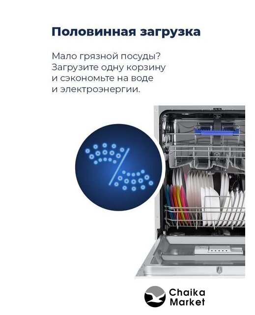 загрузка на 10 комплектов посуды, сенсорное управление, 9 программ, 44.8x60x82 см, белый цвет, сушка: стандартная (конденсация)/с открыванием дверцы, индикация на полу: нет