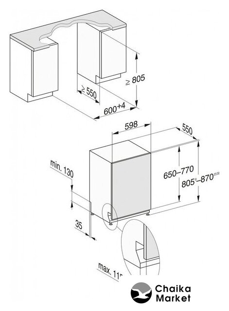 загрузка на 14 комплектов посуды, сенсорное управление, 6 программ, 59.8x55x80.5 см, черный цвет, сушка: с открыванием дверцы, индикация на полу: нет
