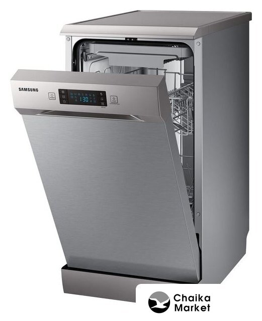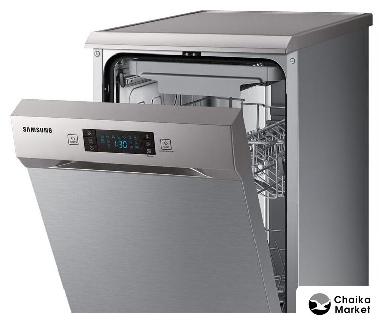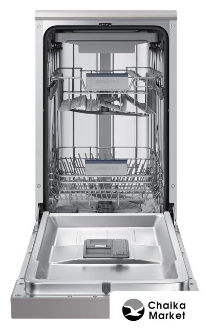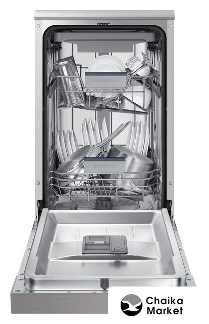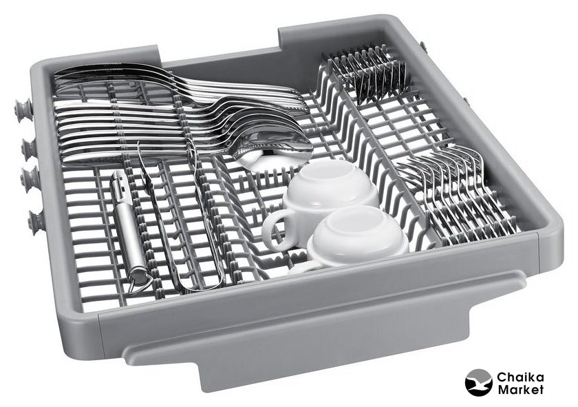загрузка на 10 комплектов посуды, электронное управление, 8 программ, серебристый цвет, сушка: с открыванием дверцы, индикация на полу: нет