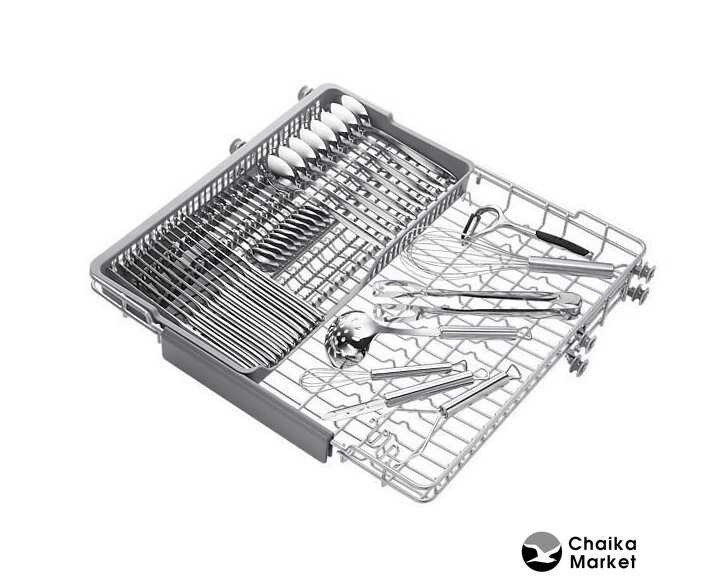 загрузка на 10 комплектов посуды, сенсорное управление, 6 программ, 44.8x55x81.5 см, серебристый цвет, сушка: с открыванием дверцы/с теплообменником/Zeolite, индикация на полу: проекция дисплея