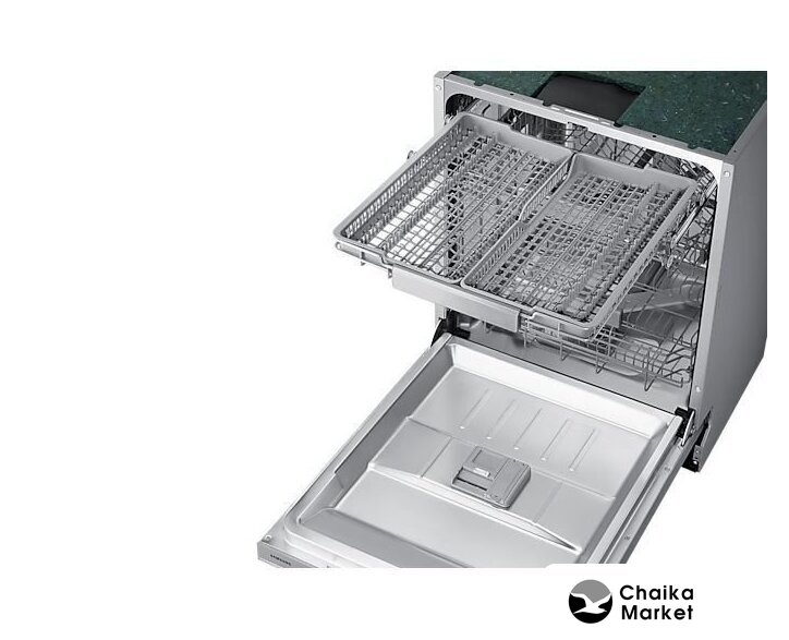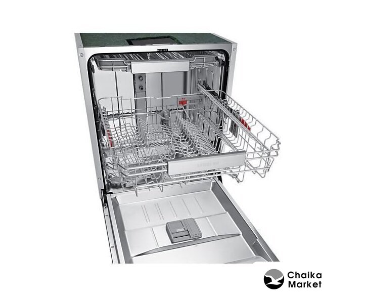 загрузка на 10 комплектов посуды, сенсорное управление, 6 программ, 44.8x55x81.5 см, серебристый цвет, сушка: с открыванием дверцы/с теплообменником/Zeolite, индикация на полу: проекция дисплея