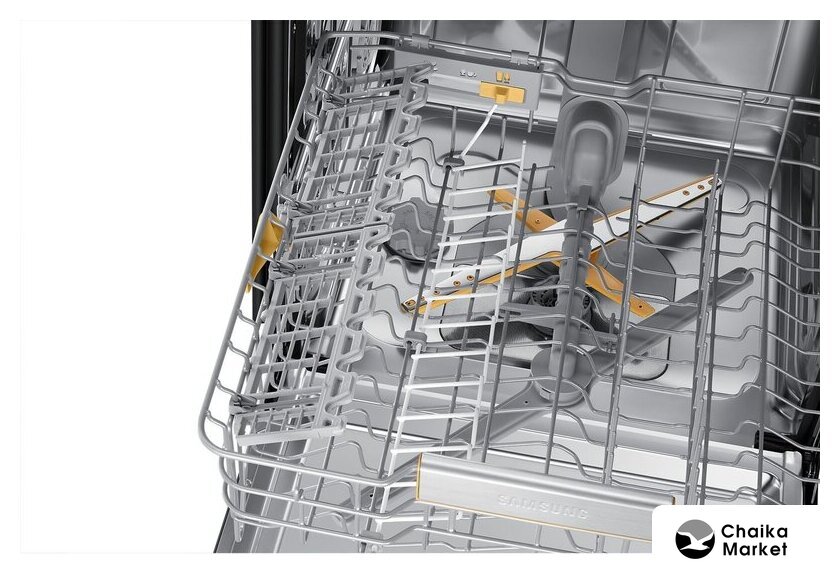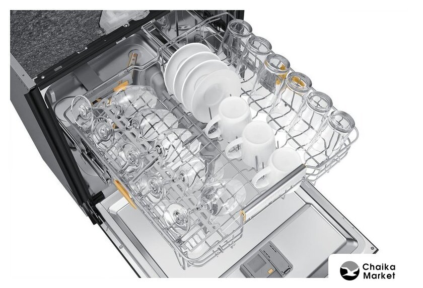 Особенности верхней корзины | регулировка положения по высоте, держатели для бокалов |
