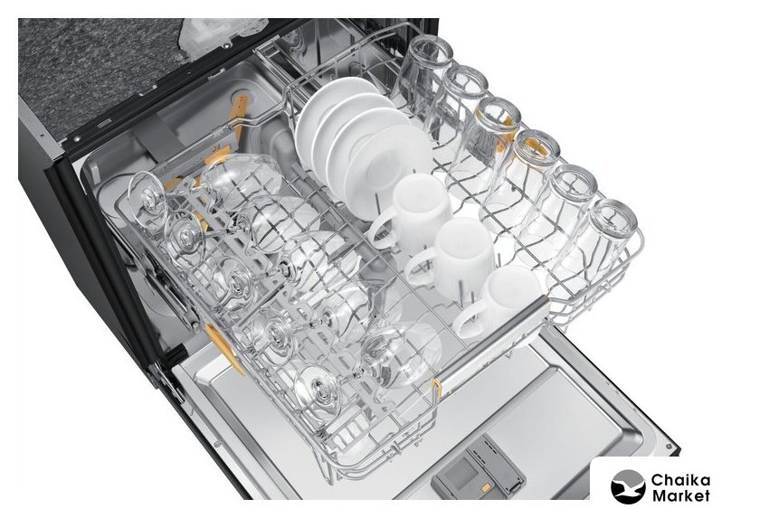 Особенности верхней корзины | регулировка положения по высоте, держатели для бокалов |
