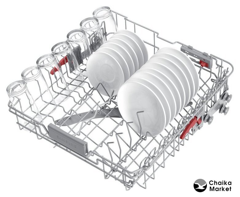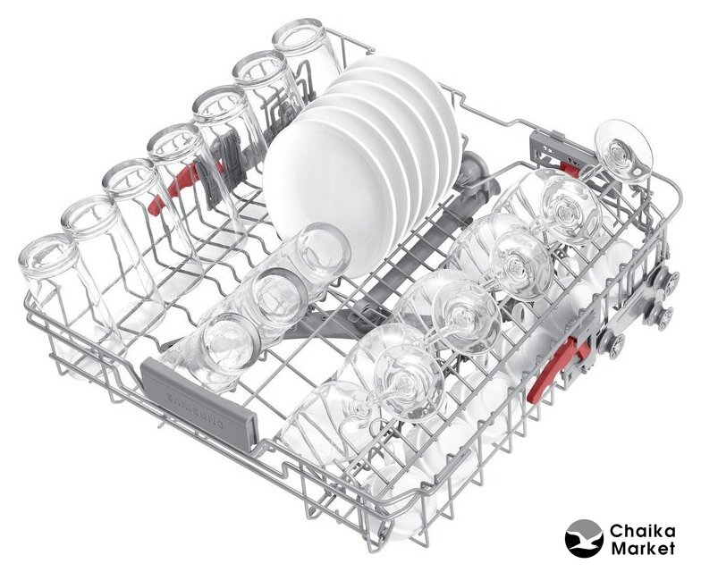 Особенности верхней корзины | регулировка положения по высоте, складывающиеся держатели |