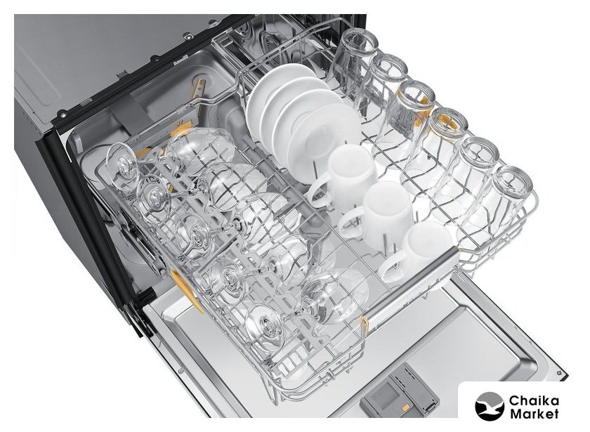 Особенности верхней корзины | регулировка положения по высоте, держатели для бокалов |