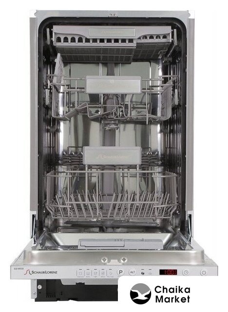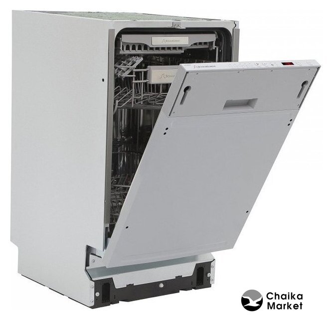 загрузка на 10 комплектов посуды, сенсорное управление, 6 программ, 44.8x55x82 см, черный цвет, сушка: стандартная (конденсация), индикация на полу: нет