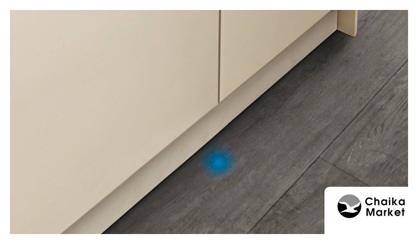 загрузка на 14 комплектов посуды, сенсорное управление, 7 программ, 59.6x55x82 см, черный цвет, сушка: с открыванием дверцы, индикация на полу: проекция дисплея