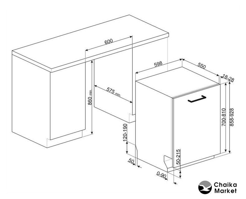 загрузка на 14 комплектов посуды, сенсорное управление, 8 программ, 59.6x56x82 см, черный цвет, сушка: с открыванием дверцы, индикация на полу: проекция дисплея