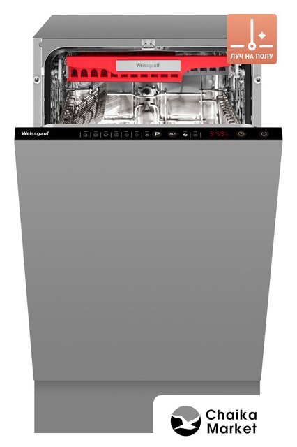 загрузка на 10 комплектов посуды, сенсорное управление, 7 программ, 45x57x82 см, черный цвет, сушка: вентиляционная с нагревом, индикация на полу: луч