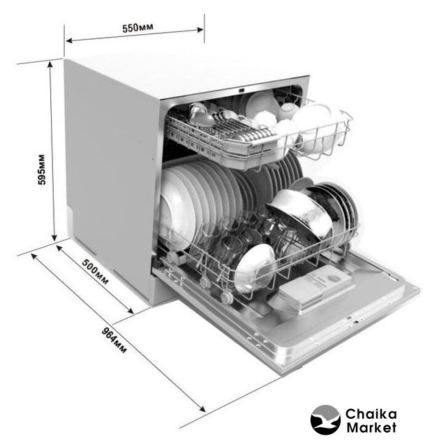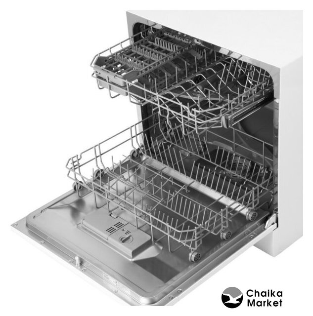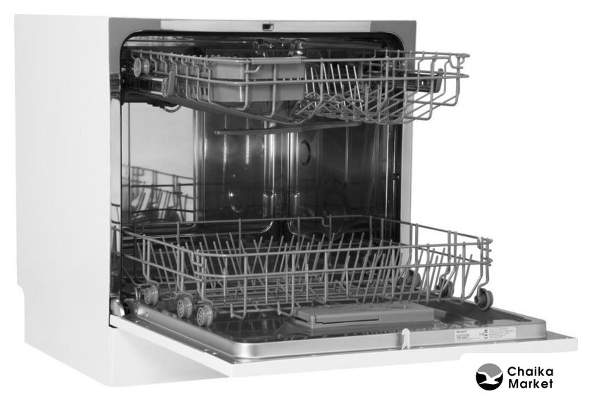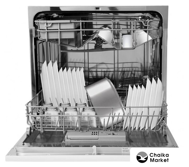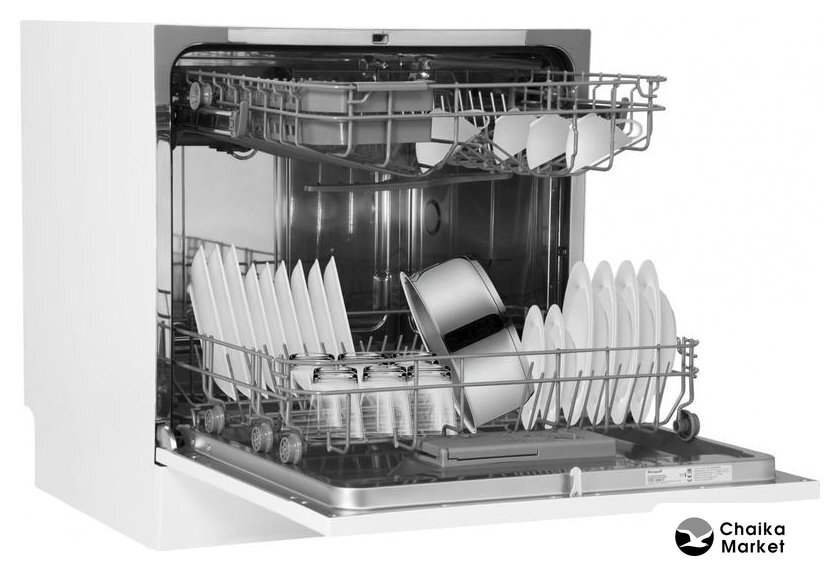 загрузка на 6 комплектов посуды, электронное управление, 6 программ, белый цвет, сушка: конденсационная, индикация на полу: нет