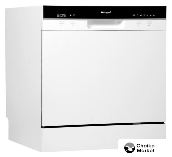 загрузка на 6 комплектов посуды, электронное управление, 5 программ, белый цвет, сушка: конденсационная, индикация на полу: нет
