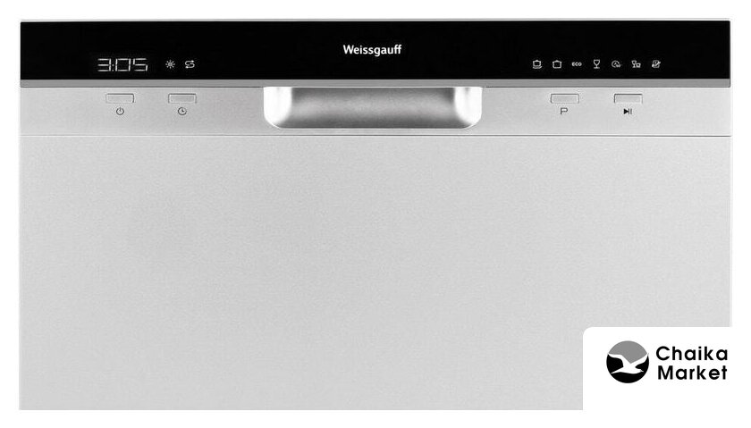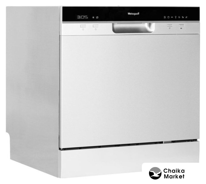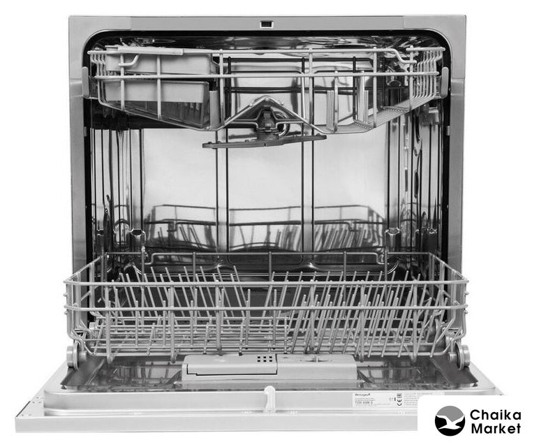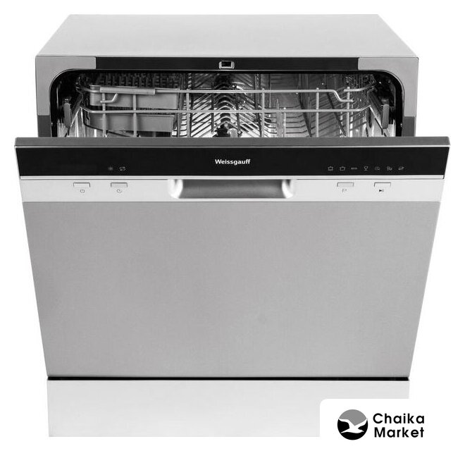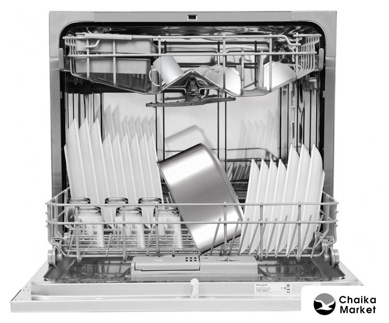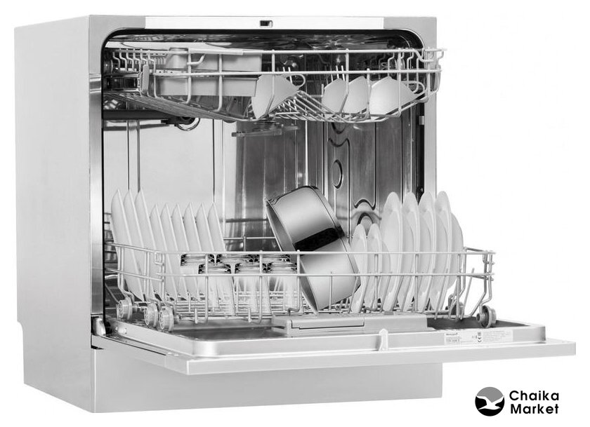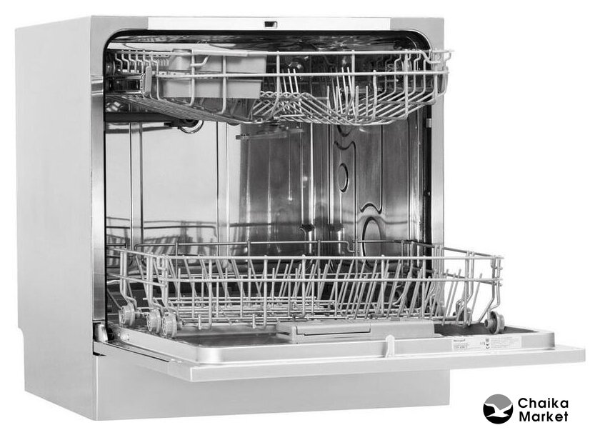 загрузка на 6 комплектов посуды, электронное управление, 7 программ, серебристый цвет