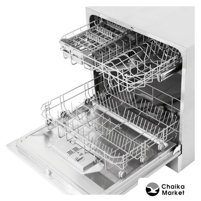 загрузка на 6 комплектов посуды, электронное управление, 6 программ, белый цвет