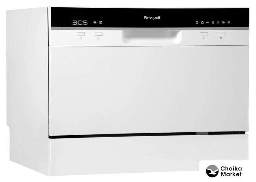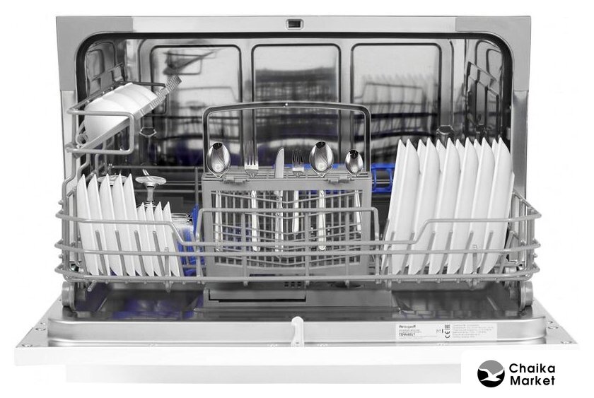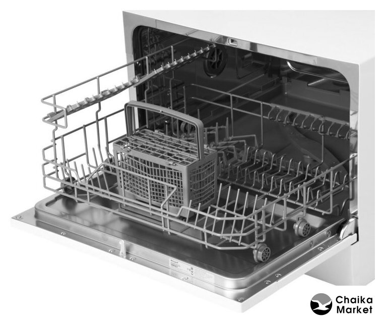 загрузка на 6 комплектов посуды, электронное управление, 6 программ, белый цвет