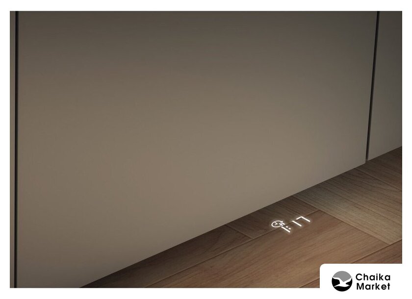 загрузка на 15 комплектов посуды, сенсорное управление, 8 программ, 59.6x55x82 см, черный цвет, сушка: стандартная (конденсация), индикация на полу: проекция дисплея