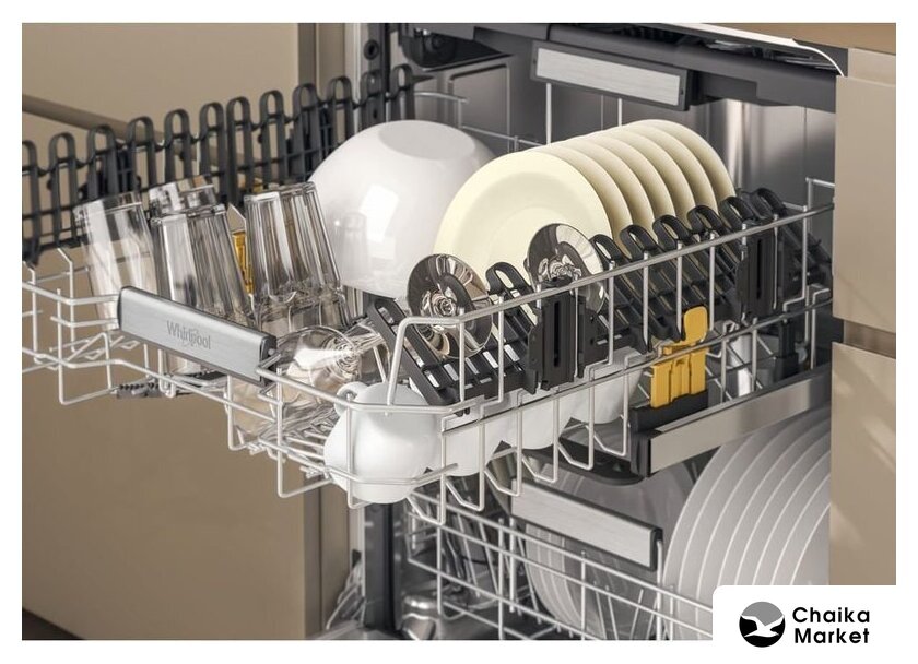Особенности верхней корзины | регулировка положения по высоте, держатели для бокалов |