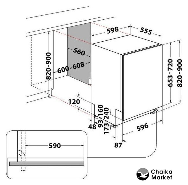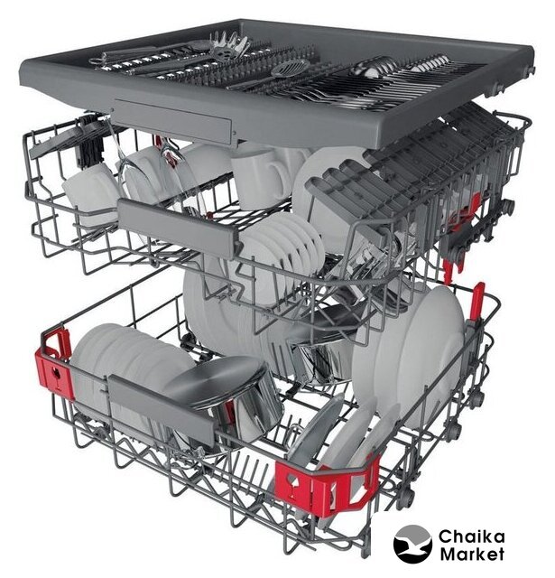 загрузка на 15 комплектов посуды, сенсорное управление, 8 программ, 59.8x55x82 см, черный цвет, сушка: вентиляционная, индикация на полу: луч