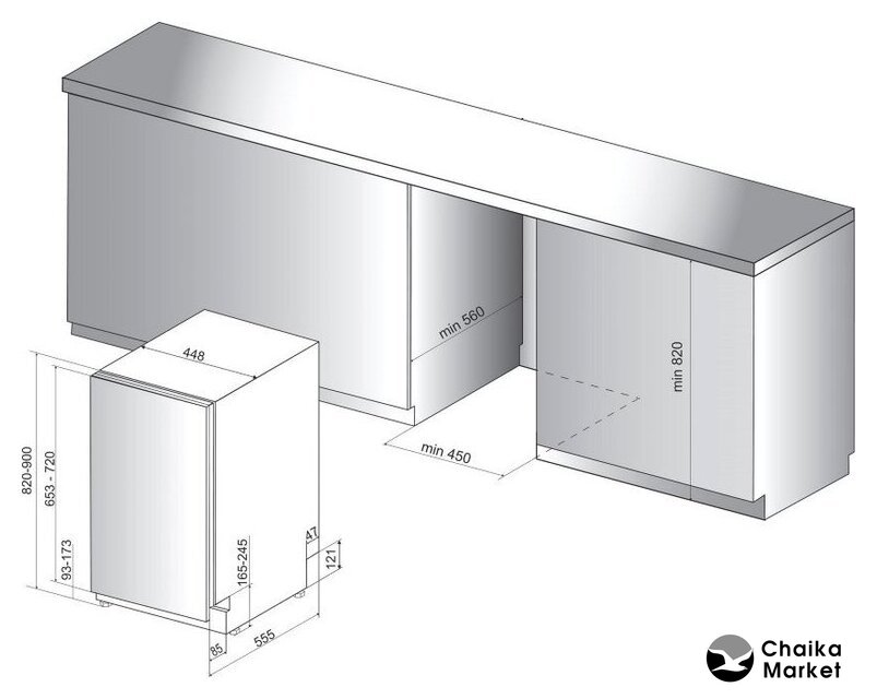 загрузка на 10 комплектов посуды, электронное управление, 6 программ, 44.8x55x81.5 см, нержавеющая сталь цвет, сушка: с открыванием дверцы/с теплообменником, индикация на полу: проекция дисплея
